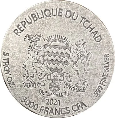 5 TROY OZ 3000 FRANCS CFA .999 FINE SILVER
