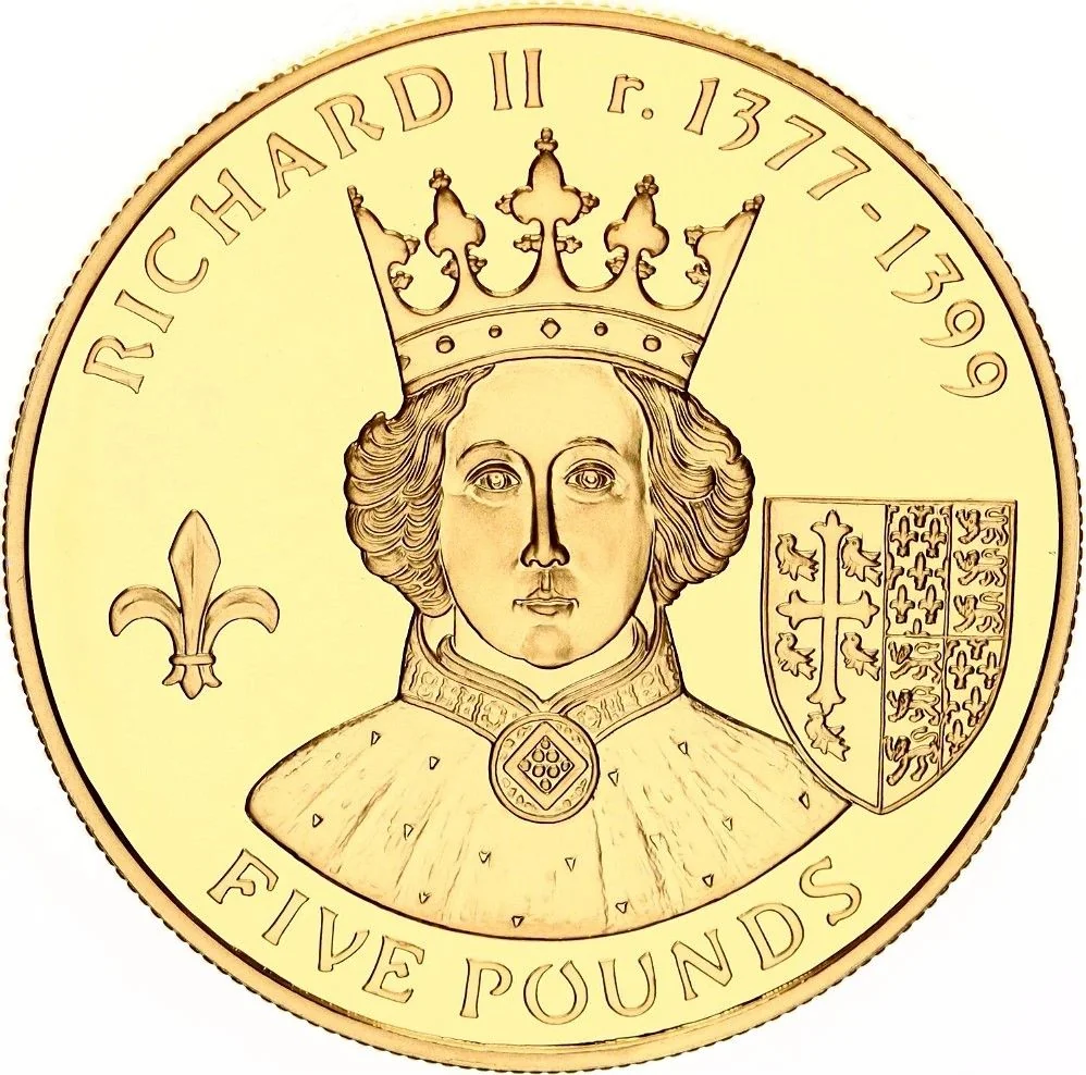 Bust of Richard II, flanked by lily and shield. Inscription and dates above, denomination below.