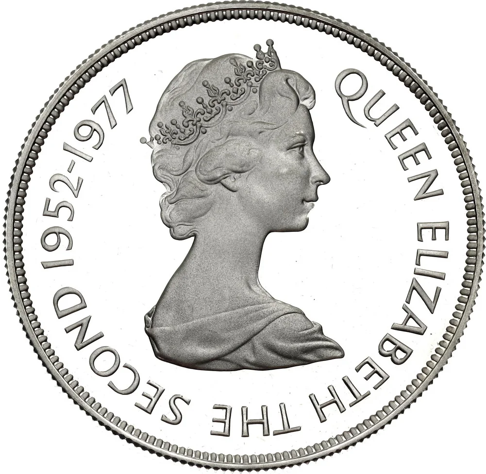 Portrait of Queen Elizabeth II facing right with dual dates.
