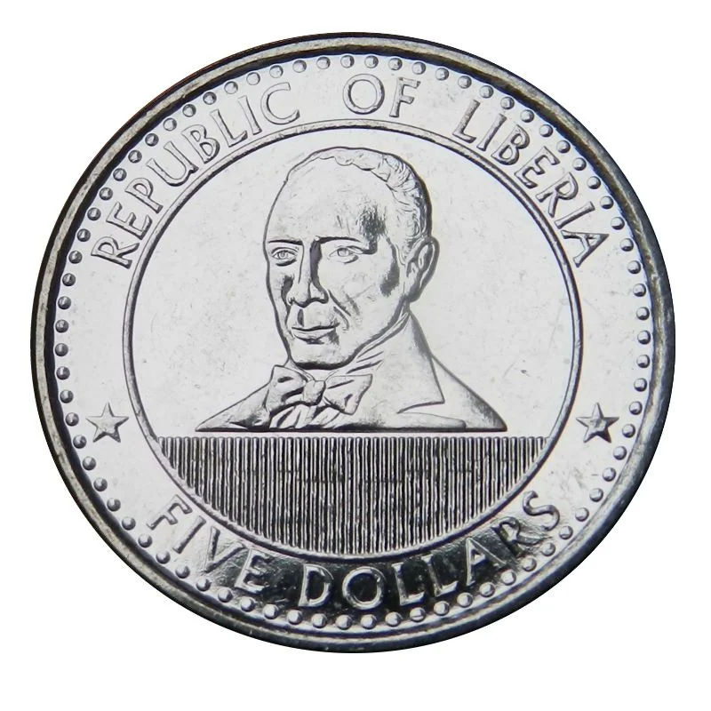 Bust of Edward Roye, latent image beneath (five stars or "L$5"), inside inner circle.