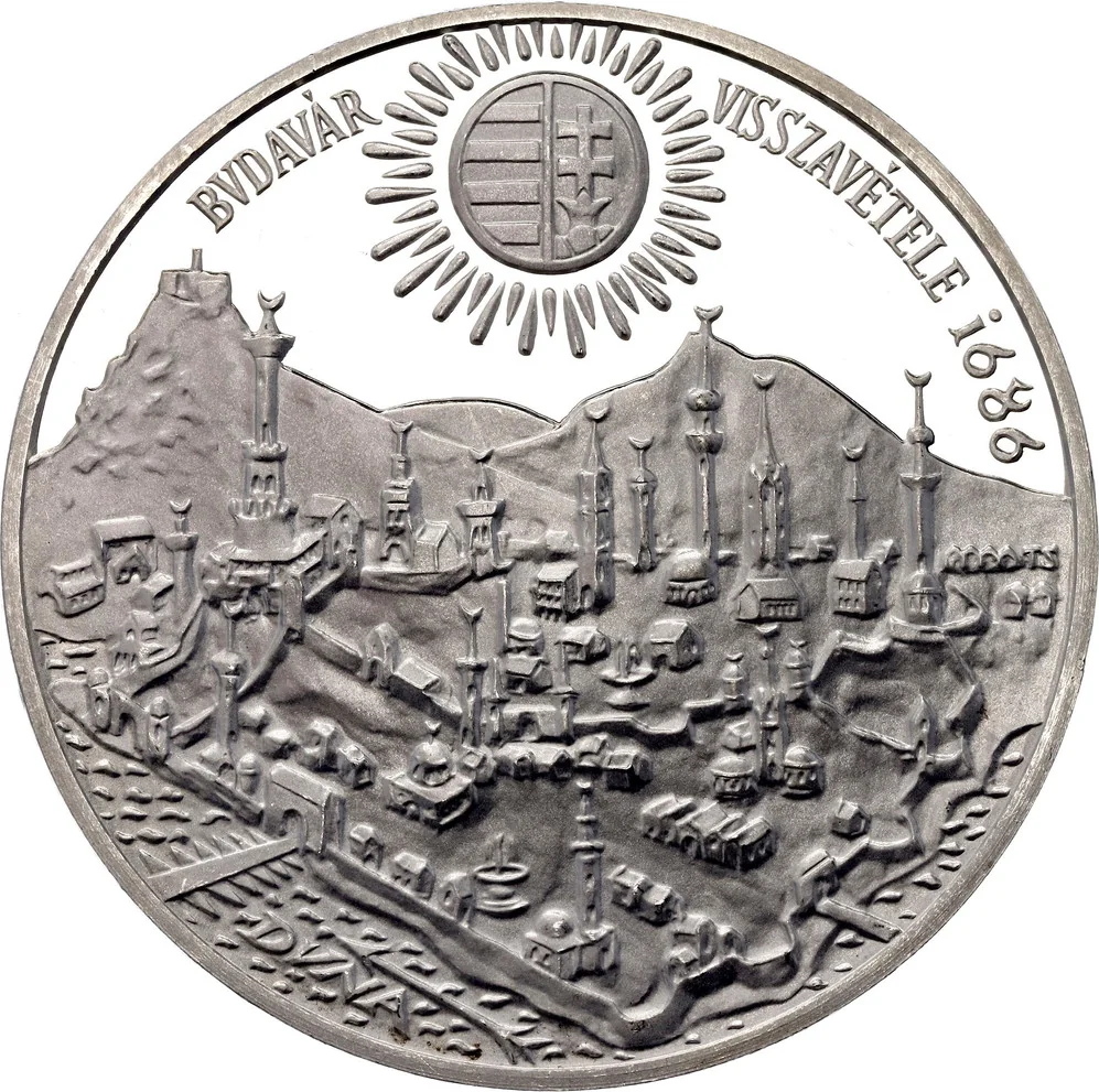 Buda under Ottoman rule, crowned by a radiant Hungarian shield.