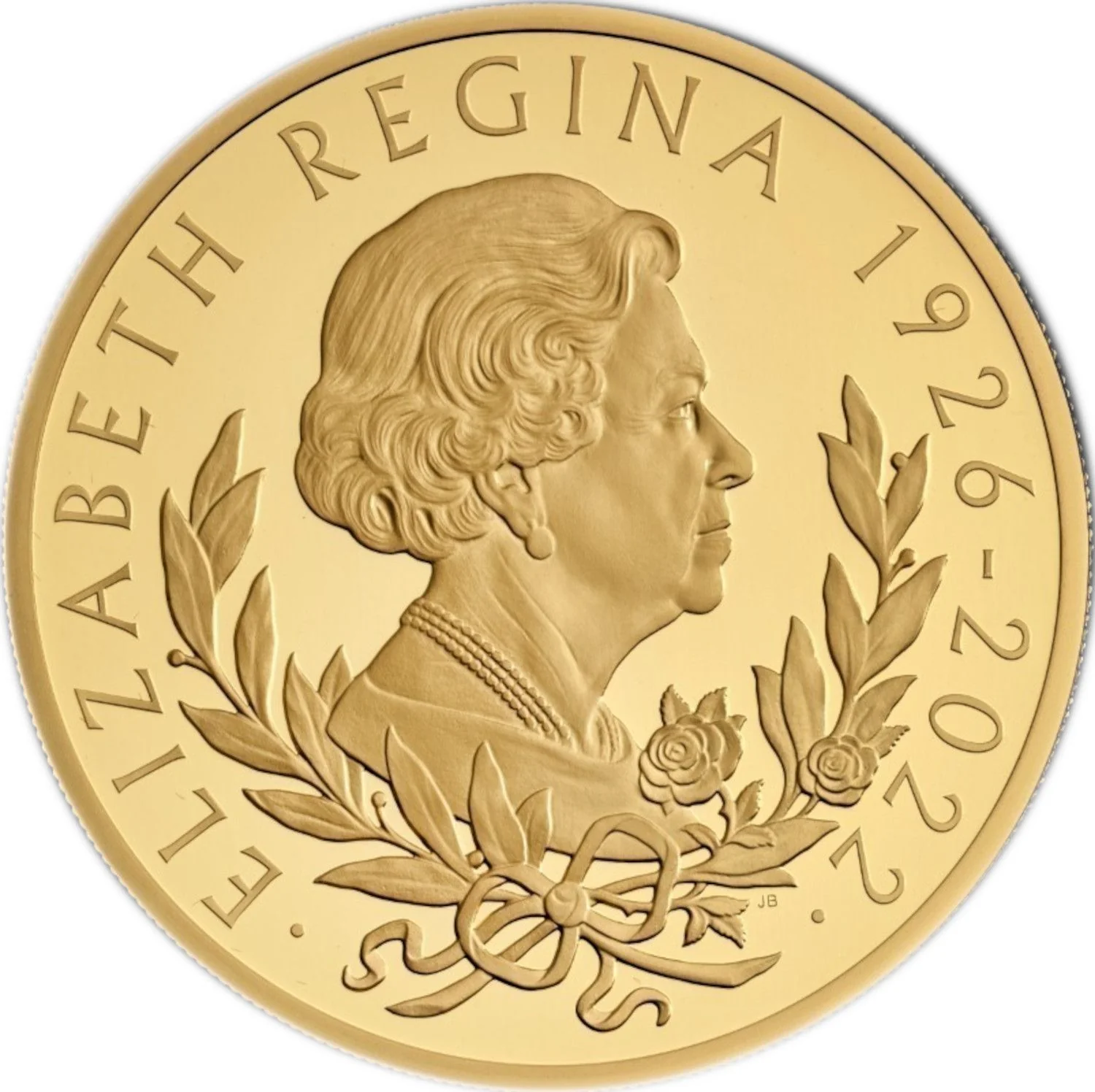 Queen Elizabeth II facing right in wreath, with dates and legend.
