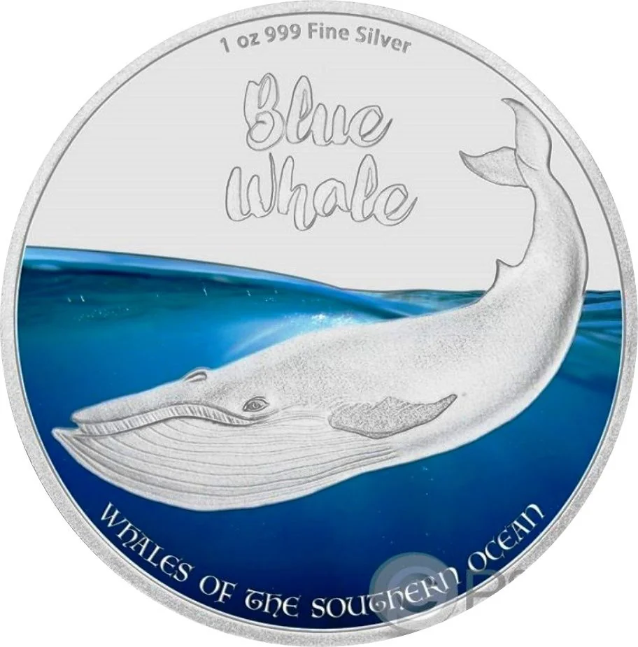 A Blue Whale in the Southern Ocean's cold, colored waters.
