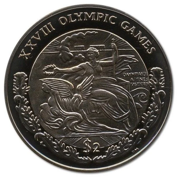 Nike crowning a phoenix rising before the Acropolis (1896 Olympic Participation Medal).