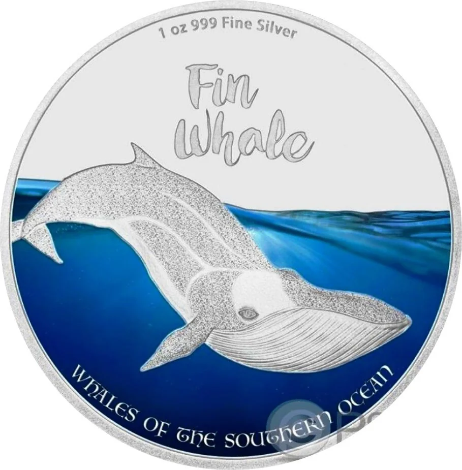A Fin Whale in the Southern Ocean's cold, colored waters.