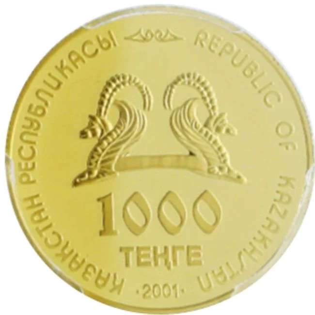Description: The reverse features the "Golden Man" and his ornaments. Enlarged decorative pads from his caftan and boots are on the left, with circular leopard-shaped overlays on the right. The top bears the Kazakhstan Mint mark, "АЛТЫН АДАМ" and "GOLDEN MAN" inscriptions, and "7.78 gr." The bottom shows "· Au 999 ·" for the metal and its fineness.