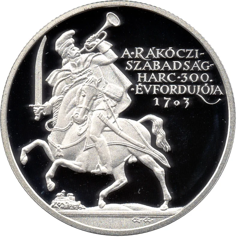 Mounted Hungarian Kuruc warrior, sword drawn.