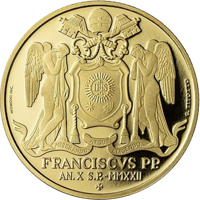 Gabriella Titotto’s design places Canova’s angels from the Stuart Monument beside the papal coat of arms.
