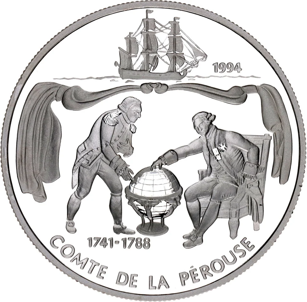 King Louis XVI and explorer Jean de Galaup with their ship.