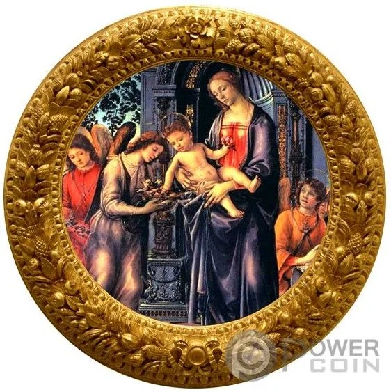 Detail of Filippino Lippi's 15th-century "Virgin and Child with Angels," framed by a wreath.