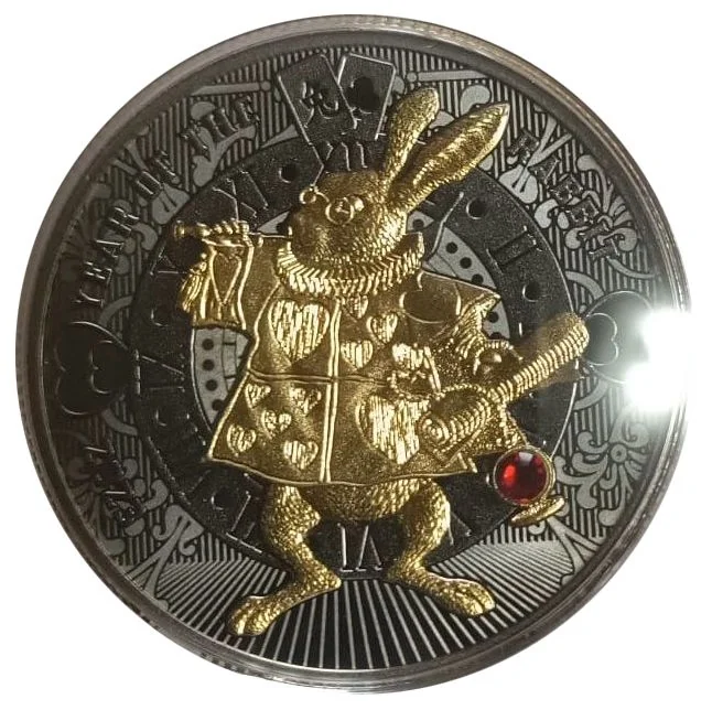 White Rabbit from "Alice in Wonderland," facing left, clock in background.