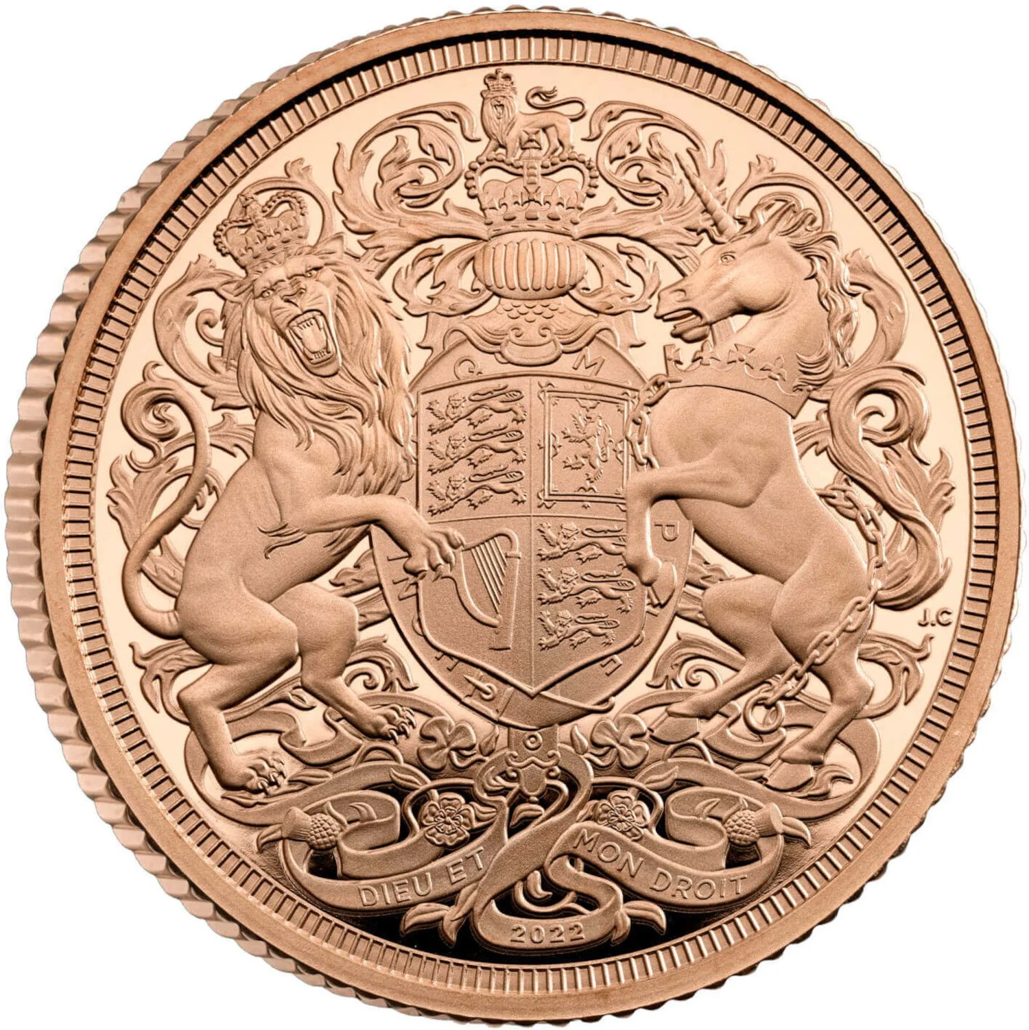 The Royal Arms: a crowned, quartered shield supported by a crowned English lion and a Scottish unicorn, with the date below.