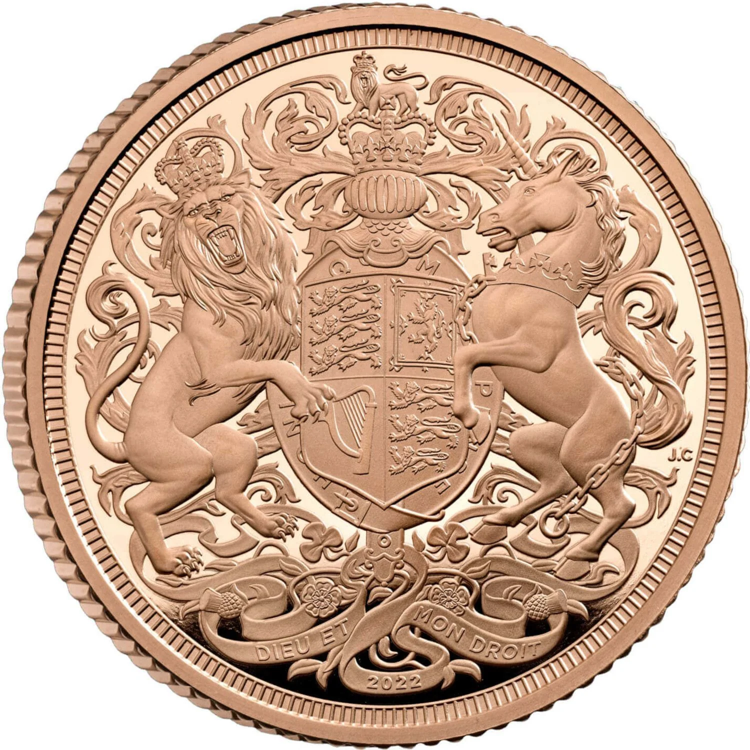 The Royal Arms: a crowned, quartered shield supported by a crowned English lion and a Scottish unicorn, with the date below.