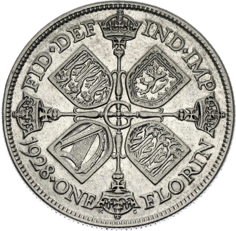 Crowned cruciform sceptres around a central G, shields of England, Scotland, and Ireland in the angles, with legend above, date and denomination below.