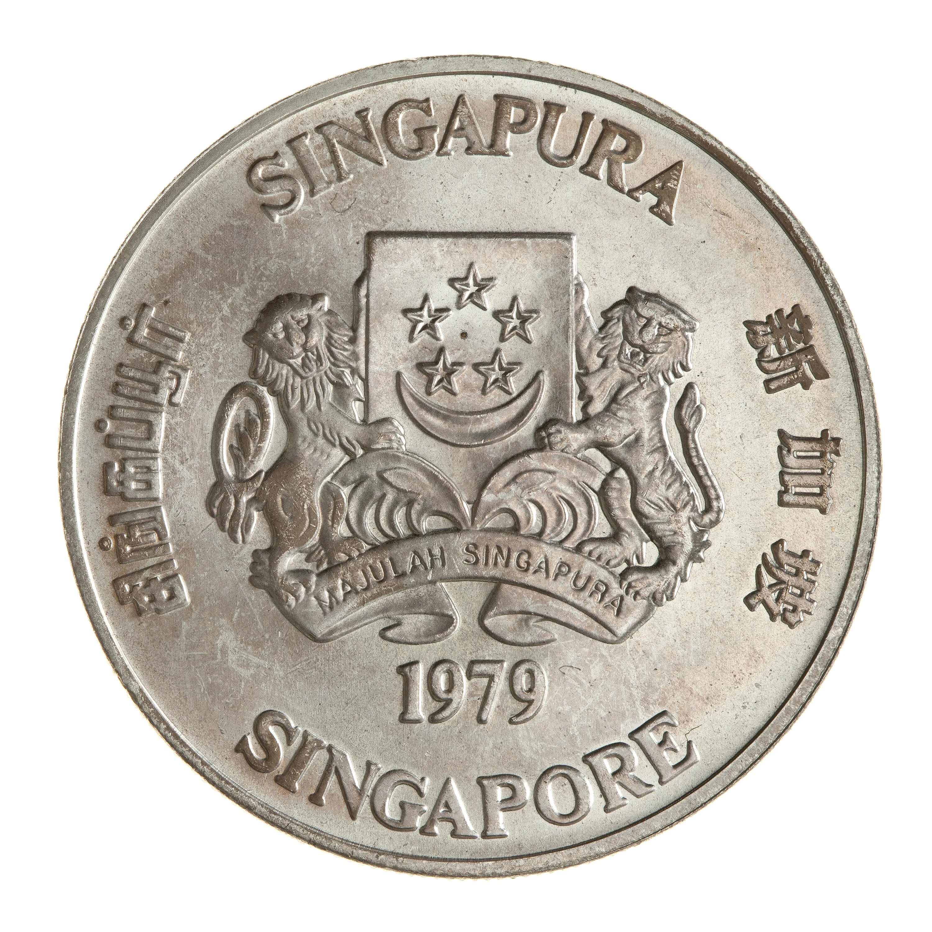 Singapore's coat of arms, encircled by "SINGAPORE" in the nation's four major languages, with the issue year beneath.