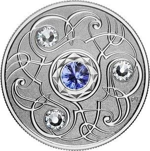 This reverse design by Pandora Young merges art and mathematics with a base-six pattern. Inspired by the Celtic triskele, it features three Swarovski® crystals and a central September birthstone crystal.