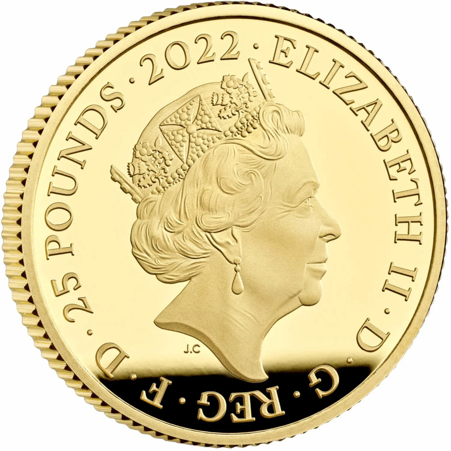 ELIZABETH II · D · G · REG · F · D · 25 POUNDS · 2022 ·