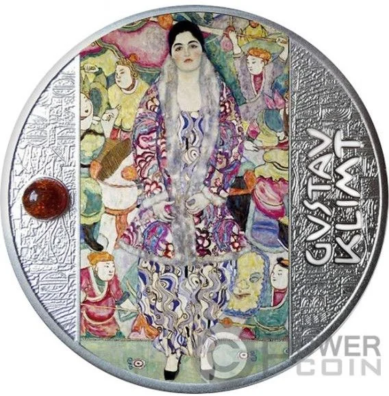 Gustav Klimt's 1916 "Portrait of Friederike-Maria Beer," featuring an amber insert at left.