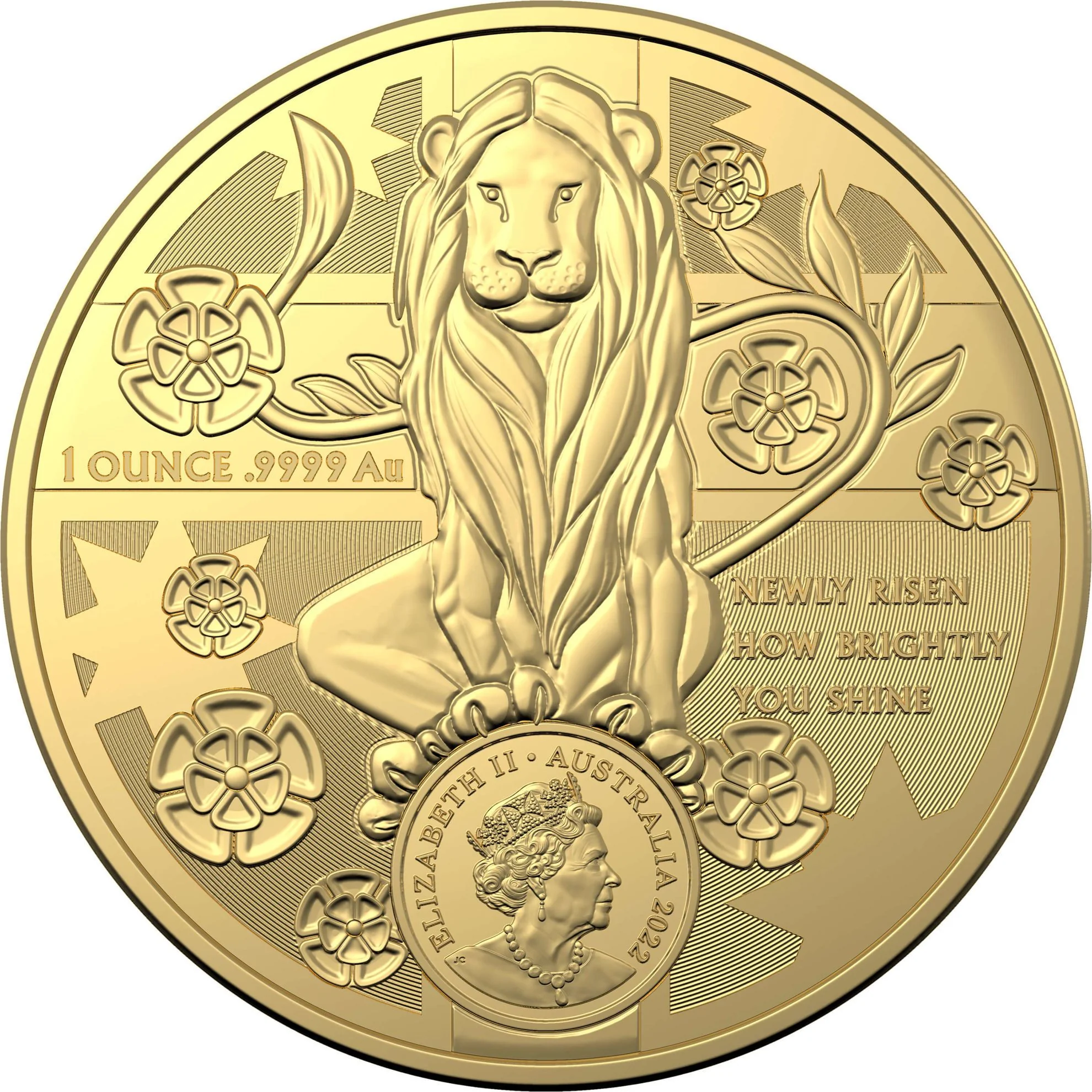 New South Wales coat of arms above Jody Clark's portrait of Elizabeth II, with weight and purity to the left.