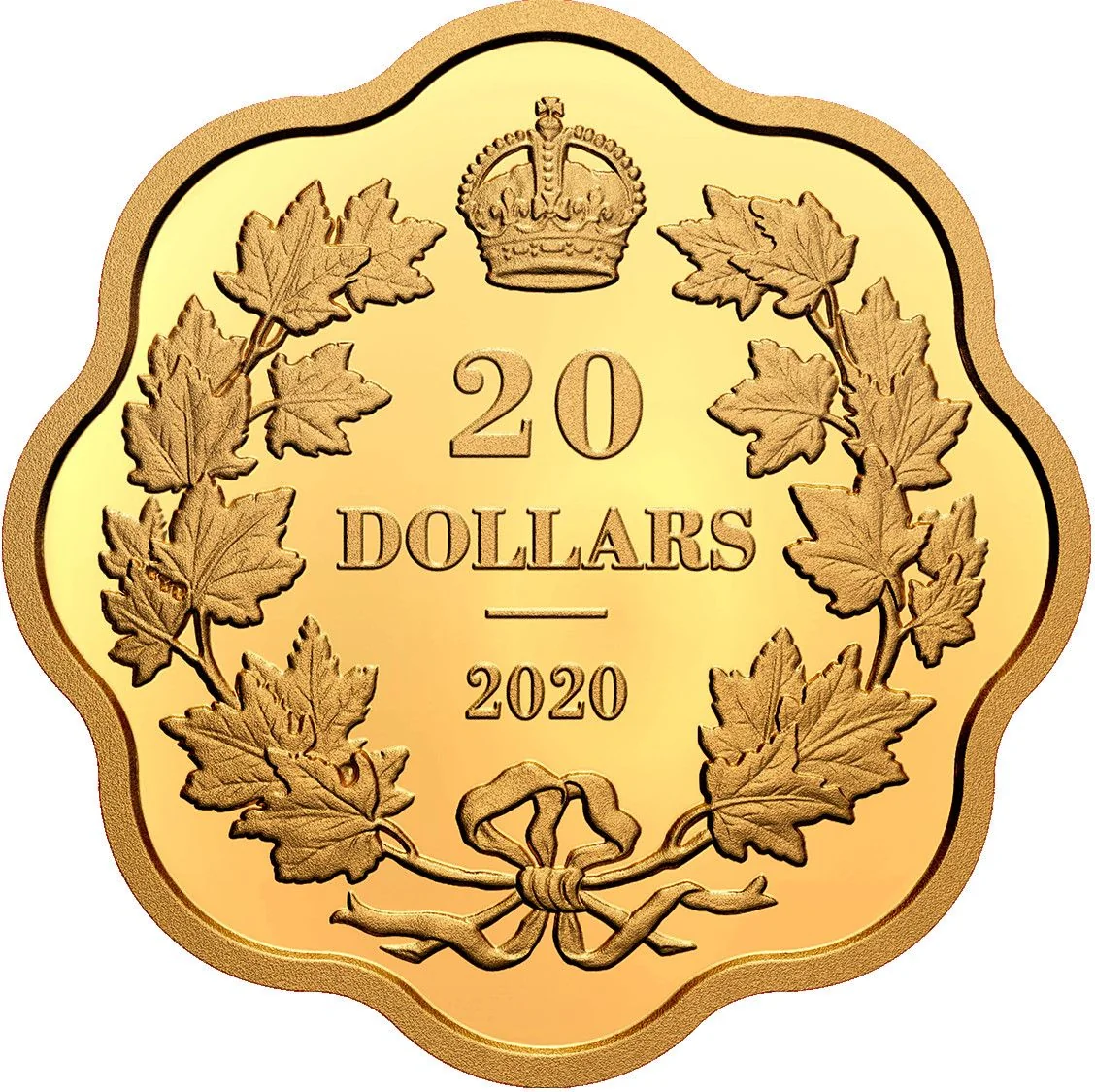 The reverse features Leonard C. Wyon's crossed maple bough design from early Canadian coinage (1858-1936).