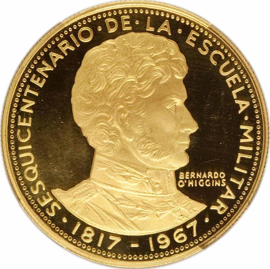 Bernardo O'Higgins armored bust right, dates below.