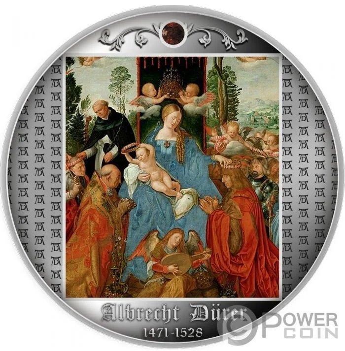 Detail of Dürer's 1506 "Feast of the Rosary" with an amber top insert.