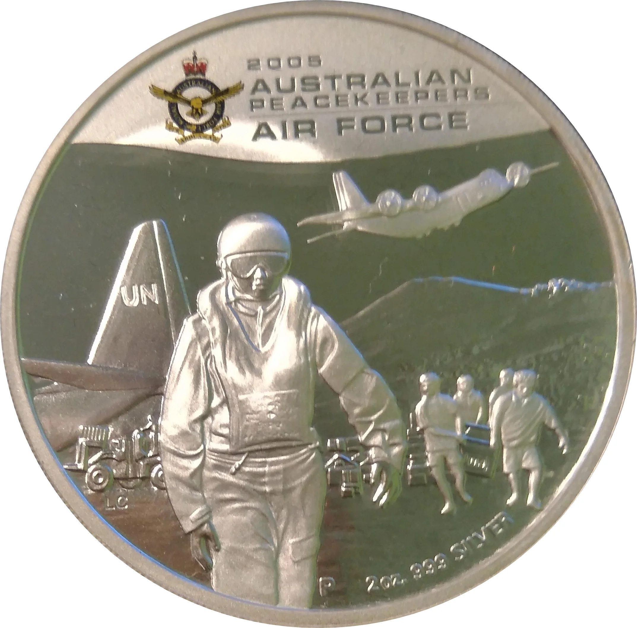RAAF badge. Transport planes airlifting supplies. Airman in foreground.