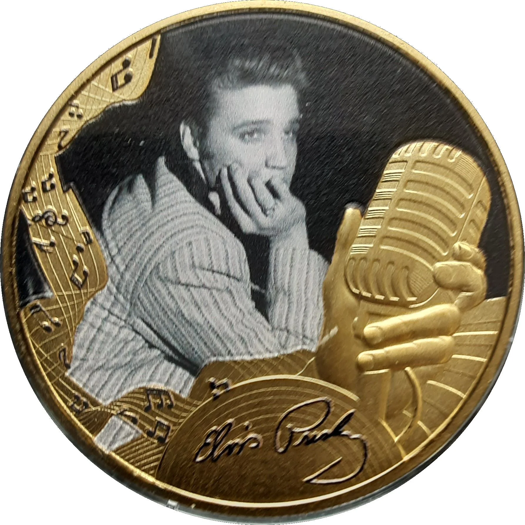 Elvis Presley with signature and microphone.