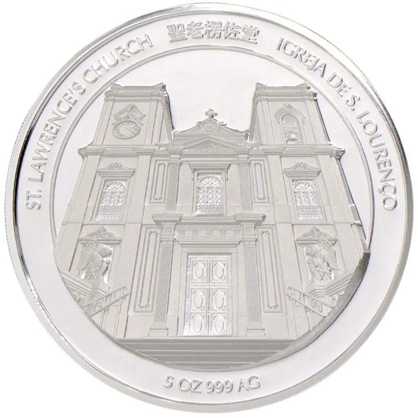 St. Lawrence’s Church facade: solid base with multilingual lettering in English, Chinese, and Portuguese.