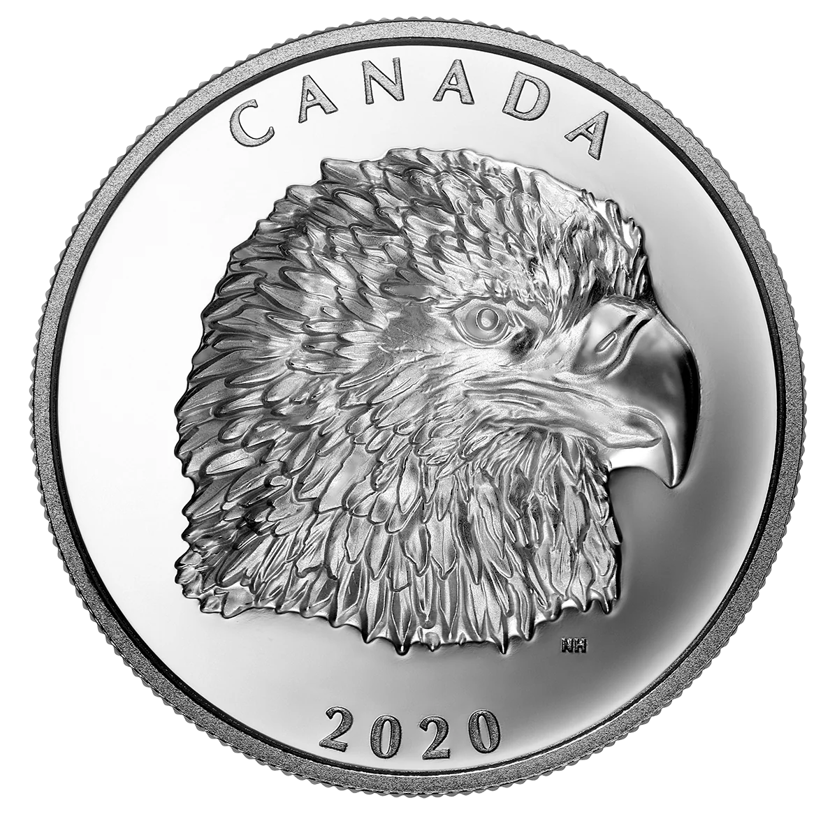 The reverse features Neil Hamelin's commanding high-relief portrait of a bald eagle in profile. The raptor's piercing gaze and textured, ruffled feathers are rendered in exceptional detail, accentuated by a proof finish that gives the background a mirror-like shine.