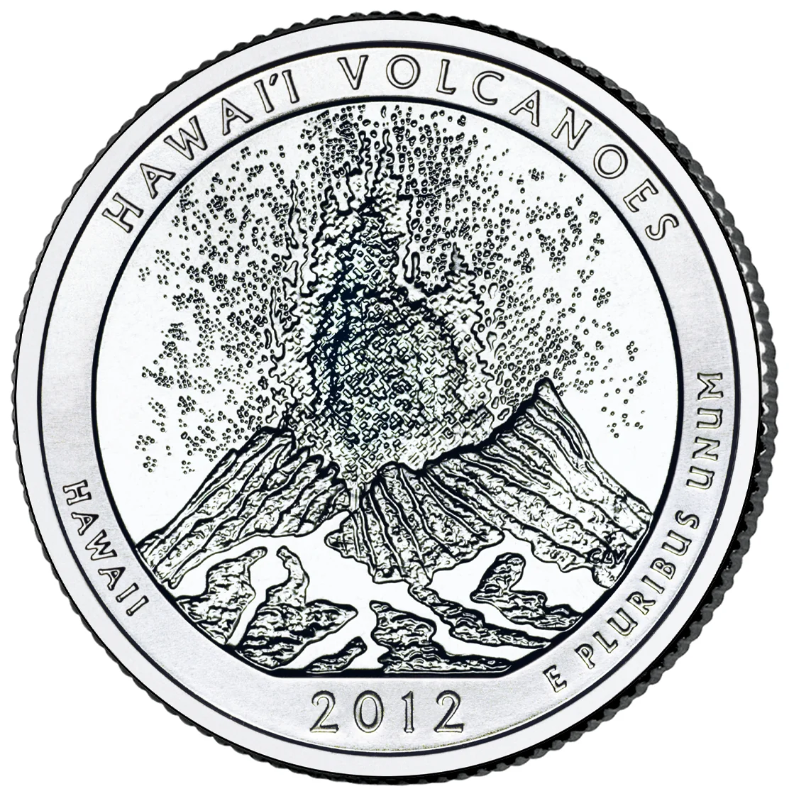 Kilauea Volcano's east rift eruption. Inscribed: "HAWAI'I VOLCANOES, HAWAII, 2012" and "E PLURIBUS UNUM."