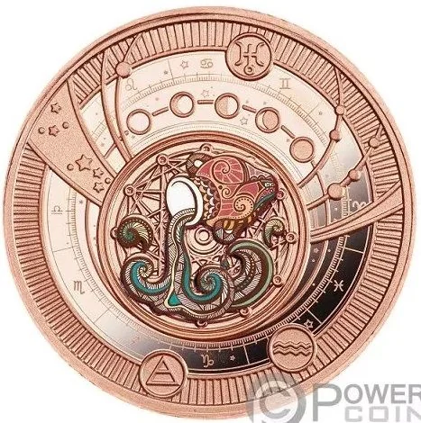 Zodiac and Moon phase disc with a colored pouring pitcher.