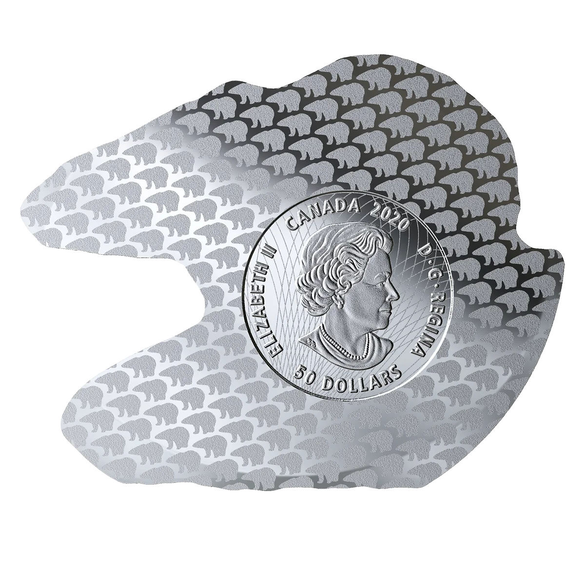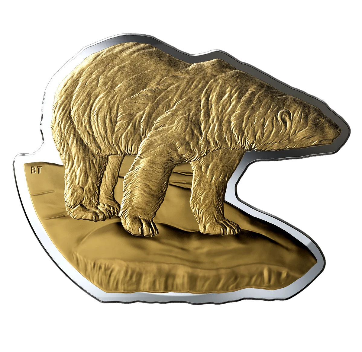 This coin maintains the precise detail and proportions of Brent Townsend's 1996 reverse design, featuring a stylized polar bear on an ice floe within its own silhouette, while being engineered for consistent weight.