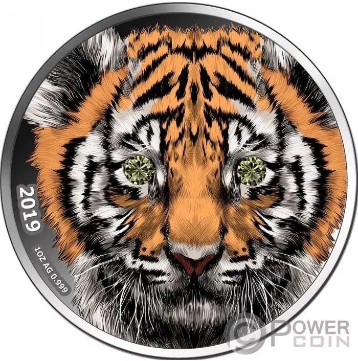 Tiger head with gemstone eyes.