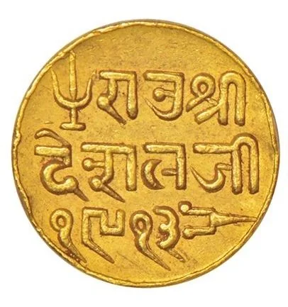 rao sri desalji in nagari with trishula, katar symbols & vs date 1913