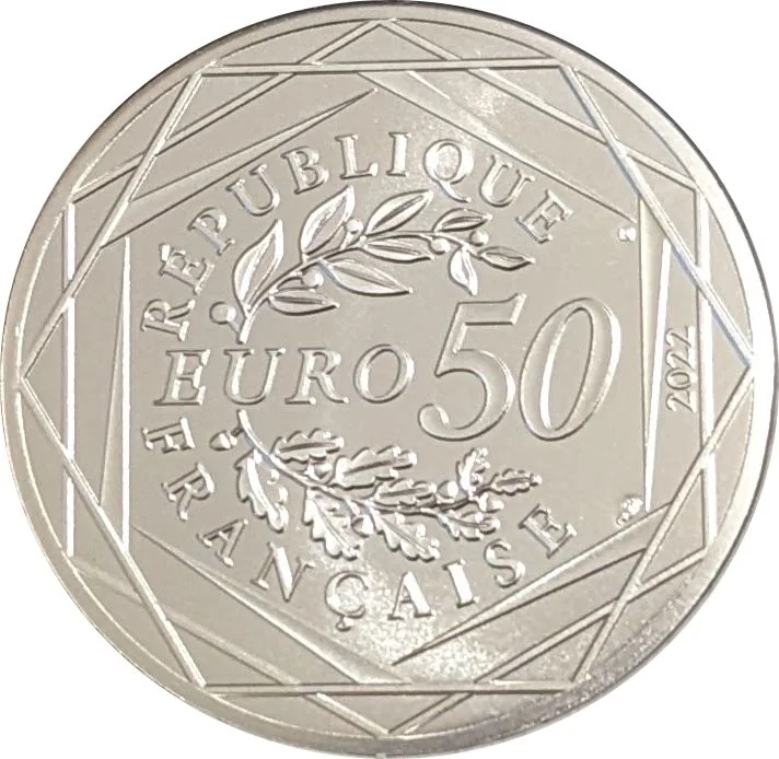 The face value between laurel and oak branches, encircled by "RÉPUBLIQUE FRANÇAISE" in three hexagons and the year.