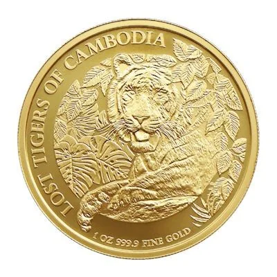 An Indo-Chinese tiger's face framed by woodland leaves, evoking Cambodia's historic tiger habitats.