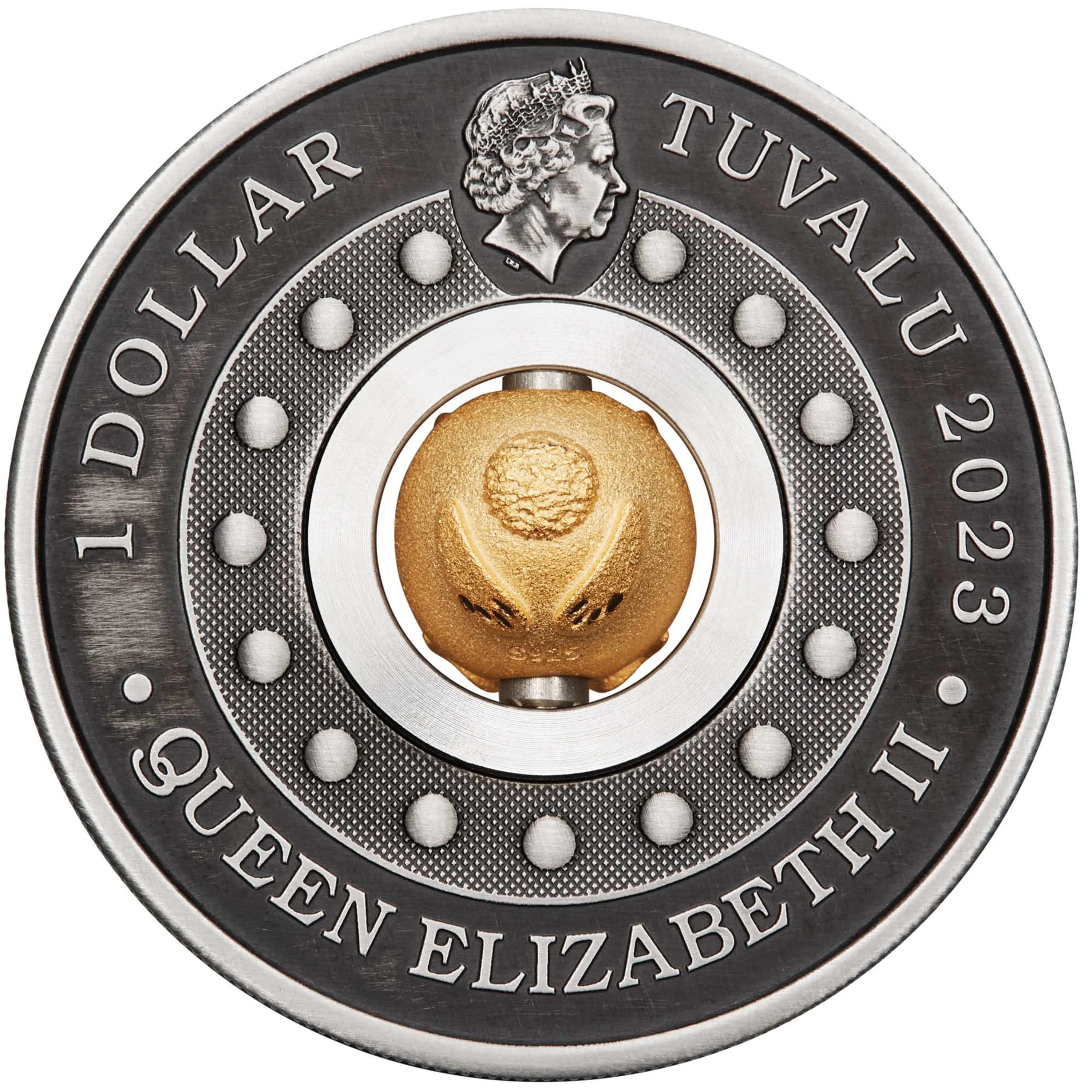 A rotating gold-plated rabbit charm encircled by artistic rabbits.