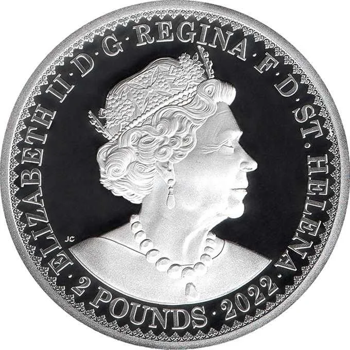 Translation: Elizabeth II by the Grace of God Queen Defender of the Faith St. Helena.