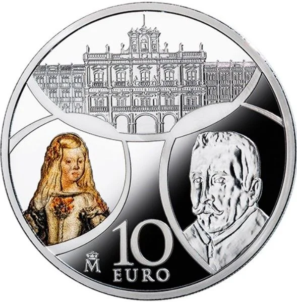 Three ovals show: Salamanca's Plaza Mayor façade; Lope de Vega's portrait from the Lope de Vega House Museum; and the colourized Infanta Margarita from Velázquez's "Las Meninas" in the Prado Museum.