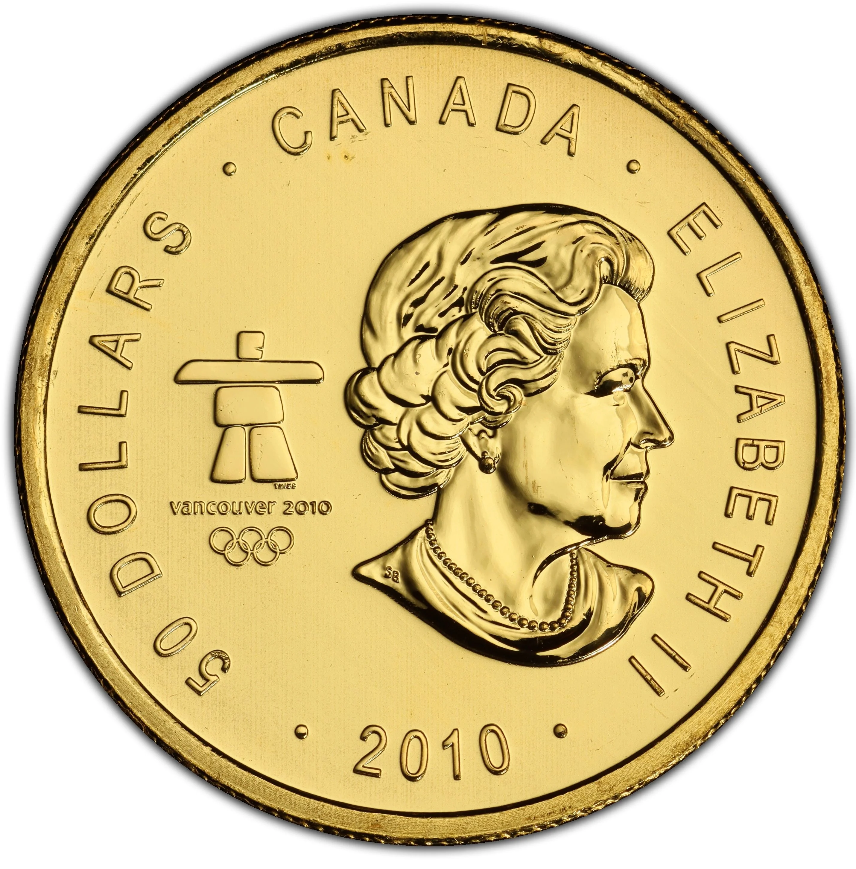 Queen Elizabeth II at 77, facing right, wearing necklace and earrings. Vancouver Olympics Inukshuk logo at left.