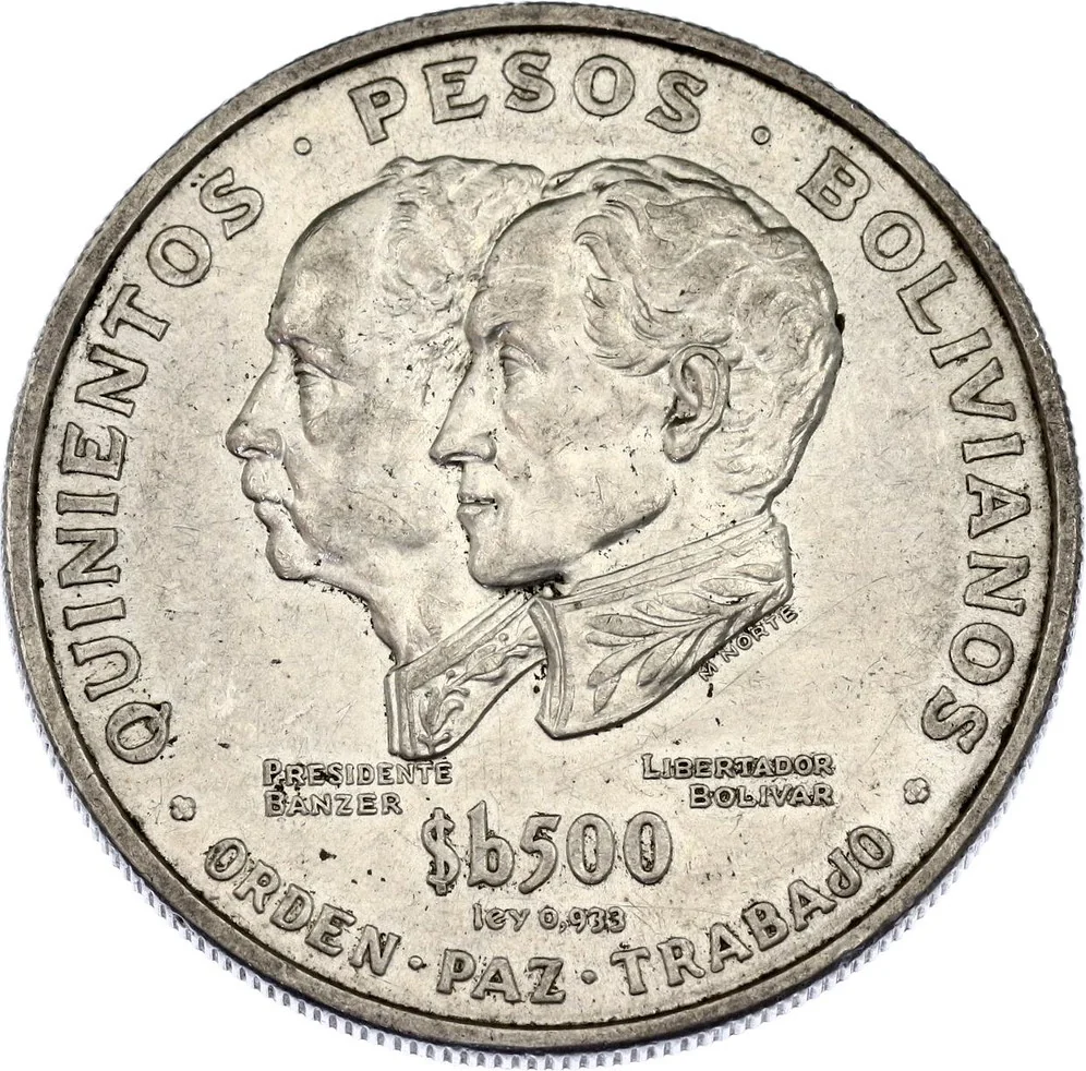 Inscription: QUINIENTOS • PESOS • BOLIVIANOS