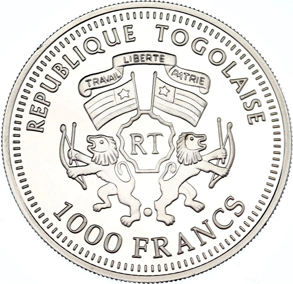 Togo coat of arms above value.