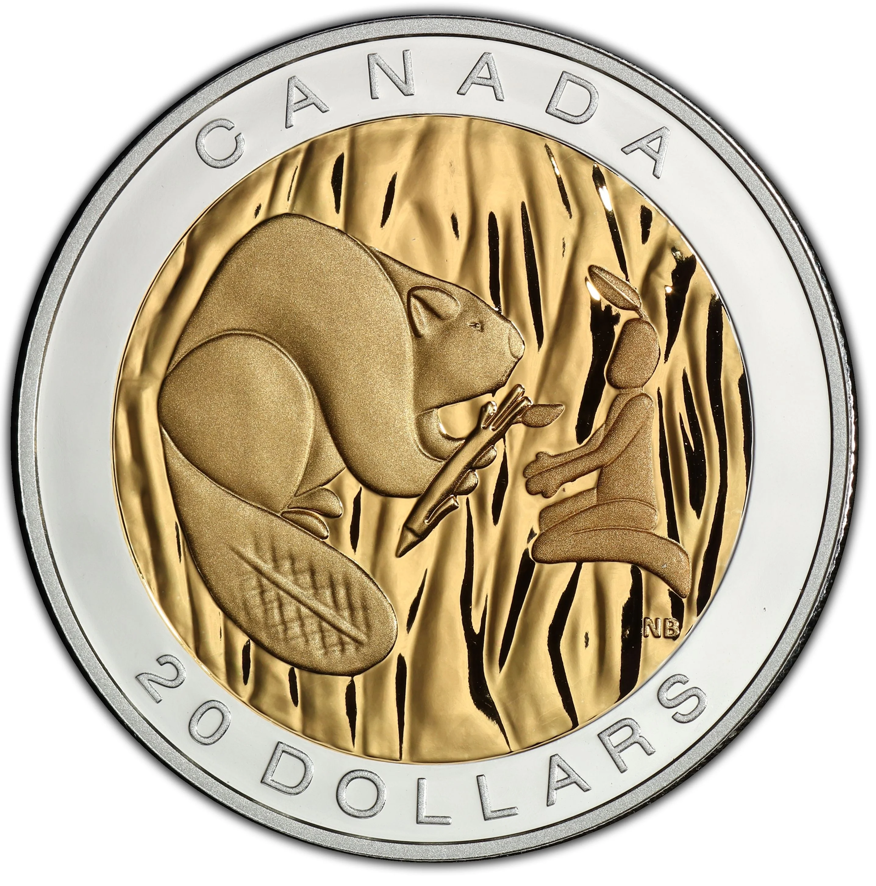 Métis artist Nathalie Bertin depicts a beaver offering a branch to an abstract figure. The beaver’s large size signifies nature’s vital role in human survival, specifically representing its teaching of the poplar tree’s medicinal power to the Anishinaabe—a lesson echoed in the bark-patterned background.