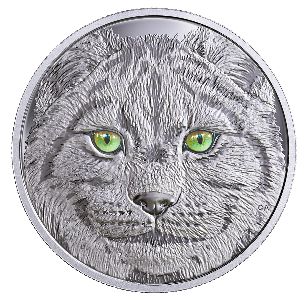 Canadian artist Curtis Atwater’s close-up engraving captures the intense gaze of the elusive Canada lynx. Innovative enamel gives its eyes a lifelike, glossy depth, enhanced by glow-in-the-dark technology that mimics their luminous nighttime stare.