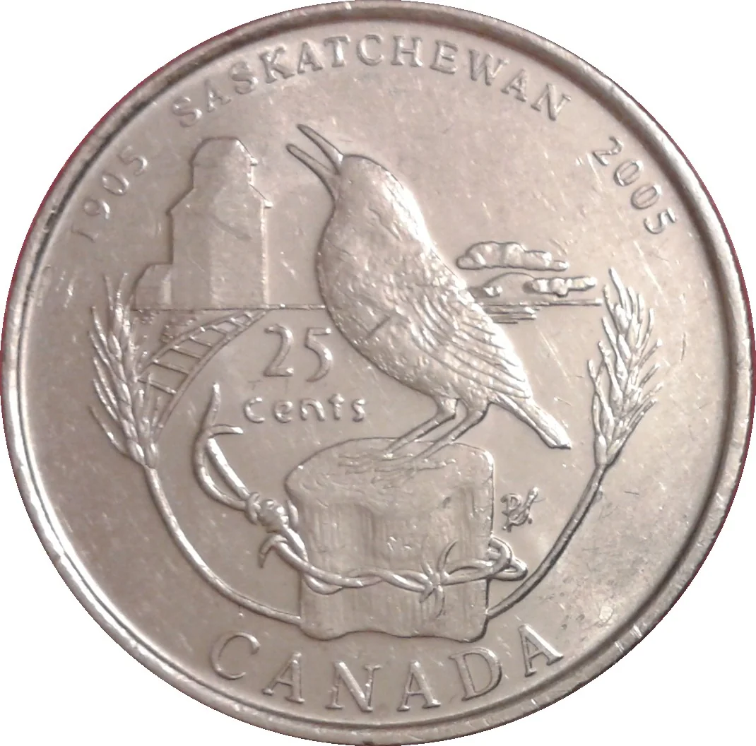 Saskatchewan's Western Meadowlark design with face value and province name.