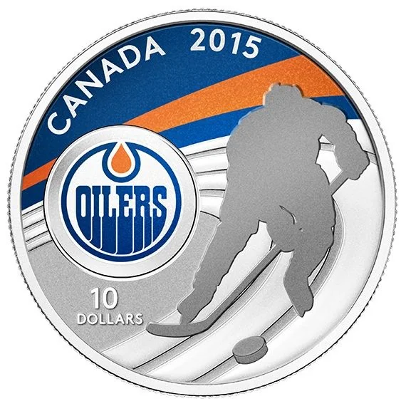 A stylized hockey player silhouette on ice with the official Edmonton Oilers® logo.