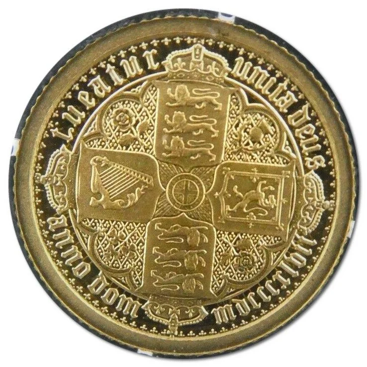 Queen Elizabeth II portrait right, gothic style, inscription around, left denomination, right date.