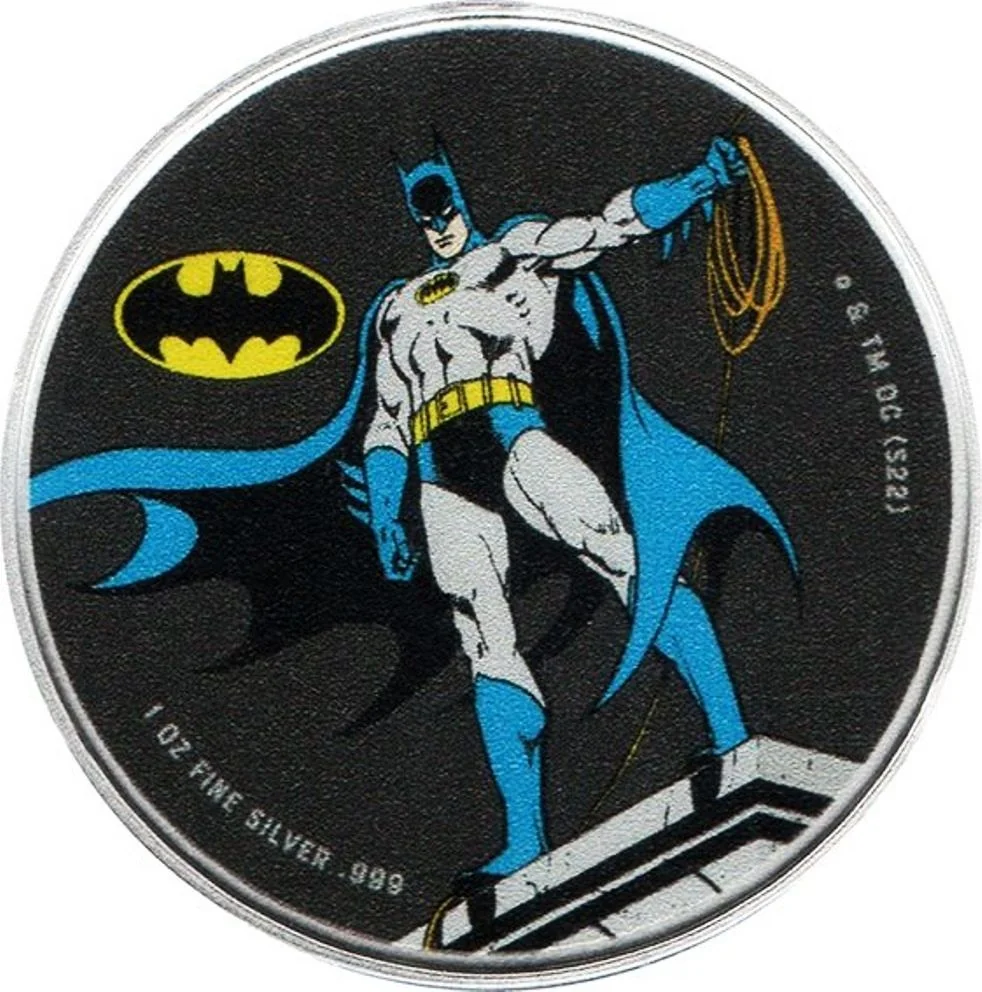 Batman on a ledge, holding the Lasso of Truth. Logo at left.