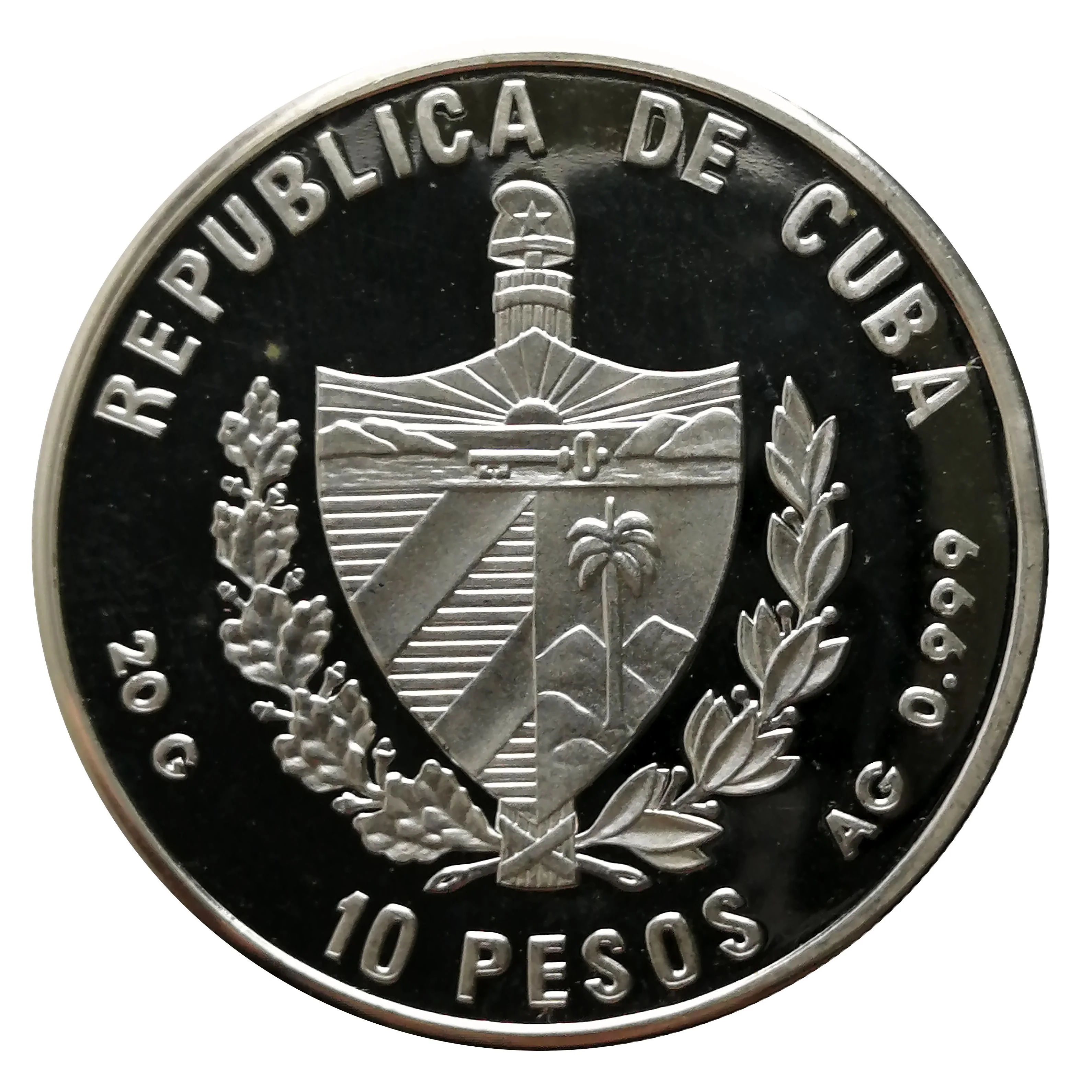 Cuban coat of arms with country name above, face value below, weight and fineness on the sides.